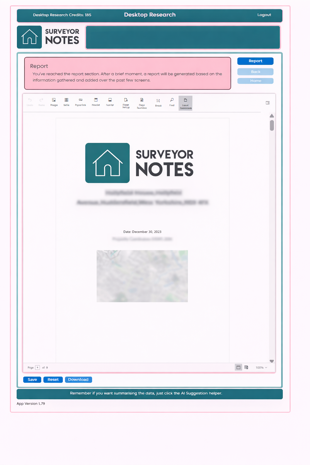 This screen is where your Desktop Research report is generated and finalised. The report is created automatically based on the data you have collected and the commentary you have chosen to include during the Analysis stage.